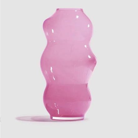 IKEA dekoration ornament i form av en rosa metallvas med spiralformad design. Används som prydnad och för att hålla blommor eller andra dekorationer på plats.
