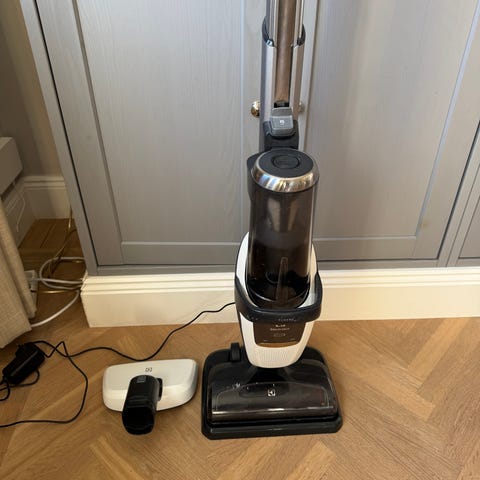 Electrolux Well Q6 skaftdammsugare i vit färg. Sladdlös modell med laddstation och avtagbar dammbehållare. Passar för dammsugning av golv och mattor i hemmet. Levereras med laddare enligt bild.