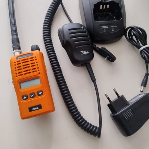 Zodiac Team Pro 27/31 radio (jaktradio) med laddare, headset och manual.