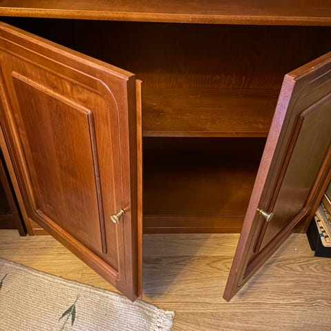Brun bokhylla med fem hyllplan varav ett är fast.