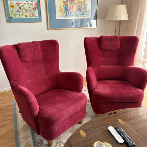 Säljer dessa fina två fåtöljerna som passar perfekt i vardags- eller tvrum.