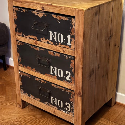 Möbeln är stabil och i gott begagnat skick med normalt bruksslitage.