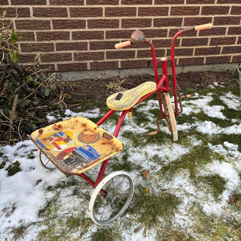 Röd cykelkärra i metall