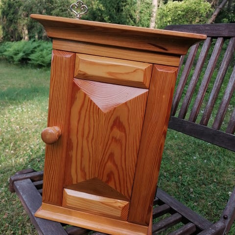 Spegel och hylla är i finfint skick för sin ålder. Jag tror att träslaget är teak. Fint hantverk.