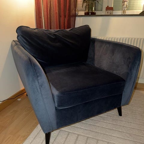 Väldigt fin grå sittpuff i sammet från Jotex.