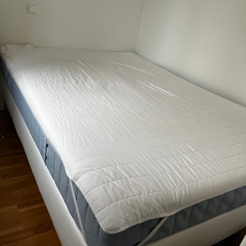 Köpt för 3 år sedan och använd med resårmadrass ovanpå, fortfarande i bra skick.
