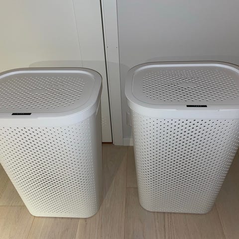 "Knodd" vit metalltunna med lock och handtag på sidorna från IKEA. Passar för förvaring, organisering eller i mitt fall: som tvättkorg. Fint skick och ren.