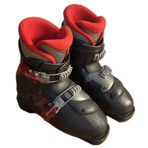 Nordica skidpjäxor för barn i storlek 20.5 (utvändigt 240mm). Skidpjäxorna har fyra justerbara spännen för att säkerställa passform. Slitstark konstruktion som spänner åt bra runt foten. Repiga från användning men inget som påverkar funktionen.