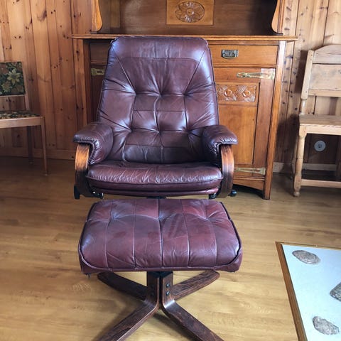 2st Retro fåtöljer i äkta läder, I använt men fint skick.