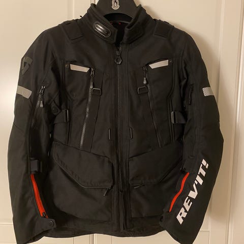 Svart/röd regntät MC-jacka från SCOTT med löstagbart innerfoder. Skydd för axlar och armbågar som också är löstagbara. Smarta fickor för att skydda mot väta.