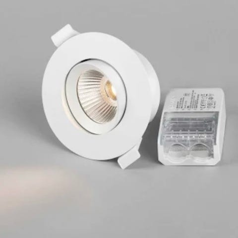 LED downlight i vit färg med rund design. Passar för infällnad i tak. Utrustad med LED-lampa och fjäderklämmor för enkel montering.