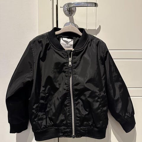 Jackan har dragkedja framtill och ribbstickade muddar vid ärmslut och nederkant. Från djur- och rökfritt hem.