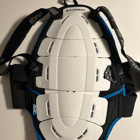 Everest XXXS ryggskydd med justerbara remmar och vadderad insida för skydd och komfort.