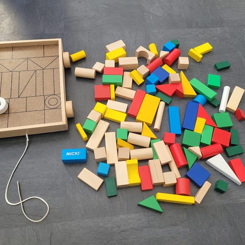 Barnleksak med flera delar inklusive olika tillbehör. Ena bordet är pingis och andra för bowling mm