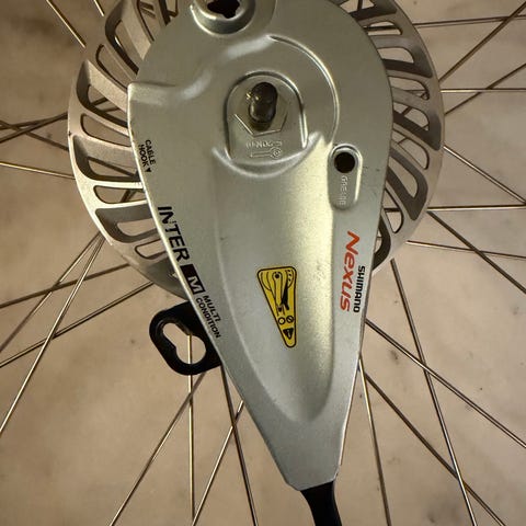 Ett framhjul med skivbroms och ett bakhjul med 8 kasset.