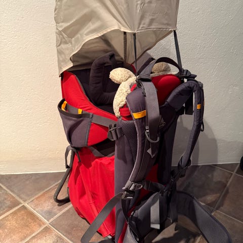 Bärstol i mycket gott skick från kvalitetsmärket Vaude, för barn upp till 20 kg eller 105 cm.