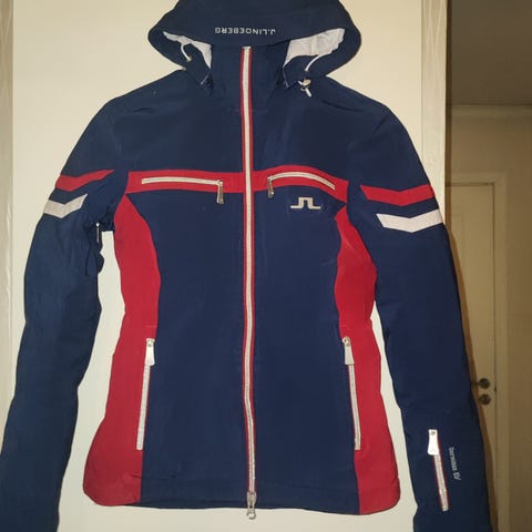 Fin blå softshell jacka med vita ränder, passar lika bra i backen som på stan.