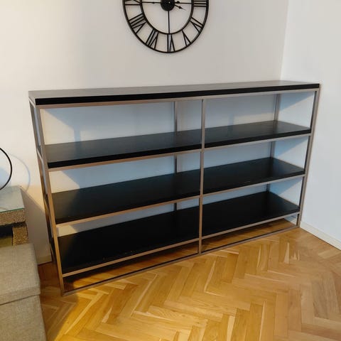 Stram och stilren metallhylla i moduler från Gerdmans. Klarar tunga vikter och är mycket stabil.