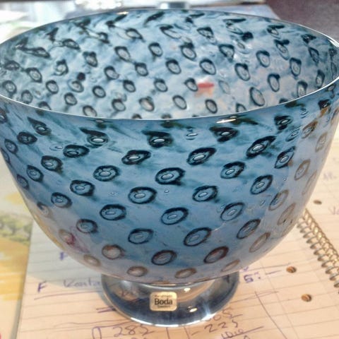 Volcano-vas i iriserande glas, designad av Bertil Vallien för Kosta Boda