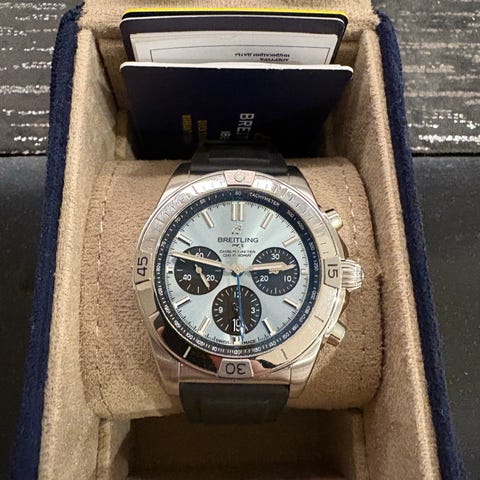 Hairlines finns eftersom den använts och syns mest på de polerade delarna runt "bezeln", men går lätt att polera. Små märken i antireflexbehandlingen som det bli när den ligger ovanpå glaset. Syns bara i specifika vinklar.