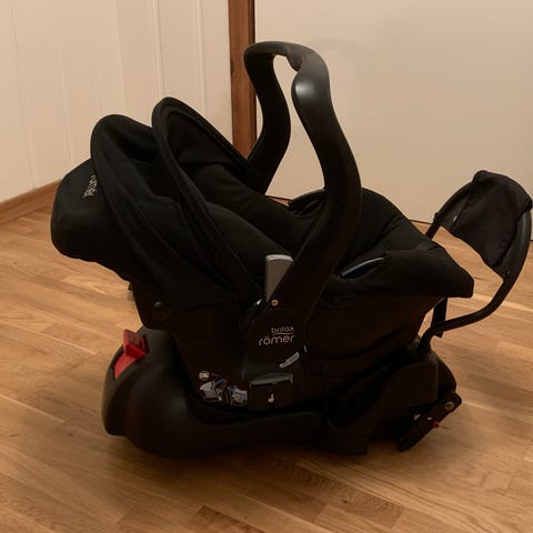 Babyskydd inköpt januari -25 och använd i 9 månader av 1 barn, bas medföljer som passar! Aldrig krockad, i fint skick förutom nån fläck på bältet. Tvättad i parfymfritt och från ett djur och rökfritt hem.