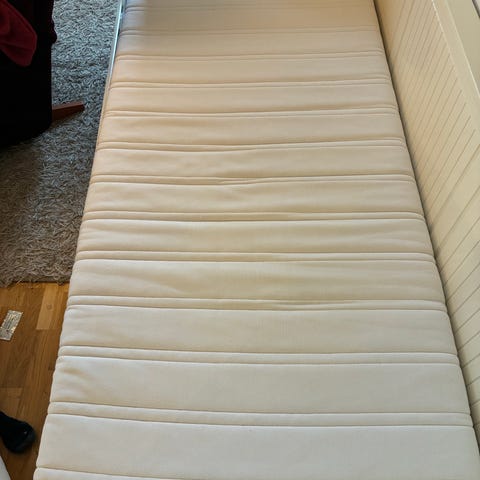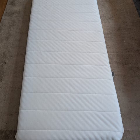 Fint använt skick, går utmärkt att tvätta. Madrasskydd, flera lakan, påslakan och ett täcke ingår. Skickas ej, kan hämtas i Lysekil eller Uddevalla.