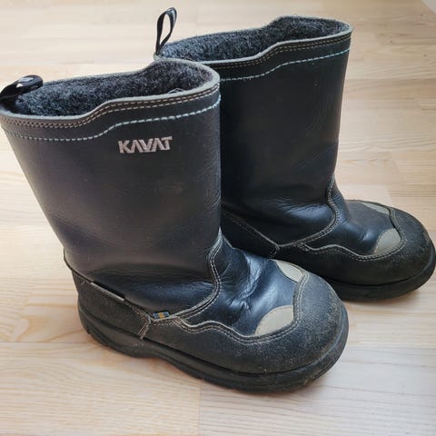 Höga vinterstövlar i skinn och ull får Kavat i storlek 22. Skorna är varma och tåliga samt lätta att ta på och av!