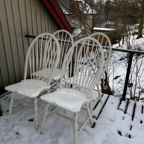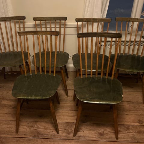 6st grönmålade pinnstolar, Fanett 55t. Edsbyverken 1900-talets mitt.