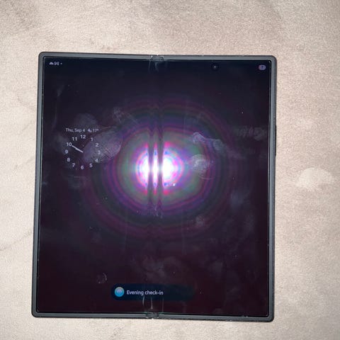Samsung Z fold 5 till salu. Telefonen fungerar som den ska. Den har några små skavanker på ramen och lite på inre ramen (syns på bild 4-5). skärm skydd och kamera skydd har använts hela tiden. Inre skärmskyddet har börjat lossna i mtten (syns på bilden) och måste bytas ut.