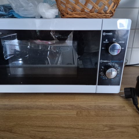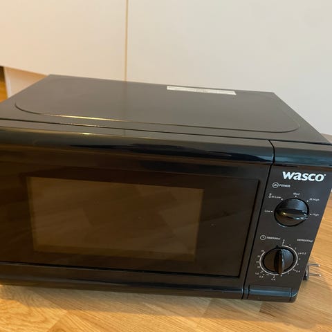 Rusta mikrovågsugn i svart färg. Utrustad med mekaniska vred för inställning av effekt och tid. Effekt på 750 W. Strömanslutning 230V-50Hz. Tillverkad i P.R.C.
