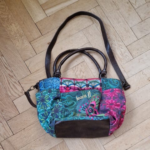 Desigual väska, bowlingbag painter med dragkedja, fickor och rem. Säljs för 300 kr.