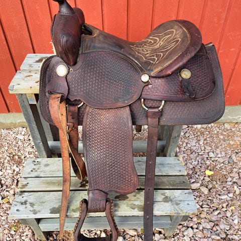 Mkt fin allround Tom Gus, FQ bom, 16.5 säte. Bekväm sadel i bra kvalite, använd men i fint skick.