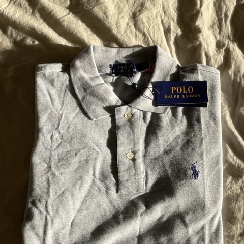 Ralph Lauren Polo tröja i storlek M, tillverkad i bomull. Tröjan är grå och avsedd för män.