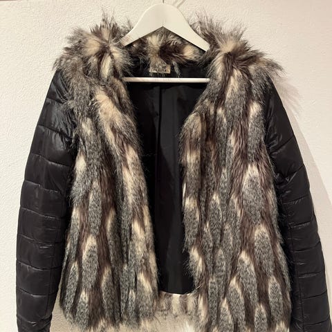 Säljer en svart jacka i mjuk fuskpäls. Jackan är i nyskick, sparsamt använd och utan fläckar eller skador.