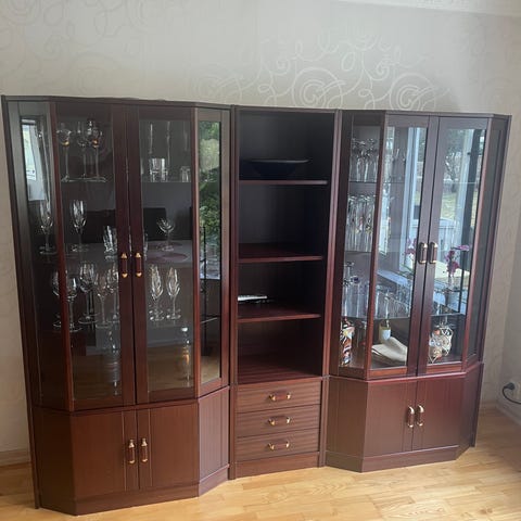Vitrinskåp den andra delen(bild 2) kan sättas till så de ser symmetriska ut. Väldigt fin pris kan diskuteras i samband med snabb handel, frakt och transport är köparens ansvar men det finns tillgång till hiss (bor på 3 våningen). En dörr är också trasig men kan säkert fixas med lite fix o trix (se på bild 4)