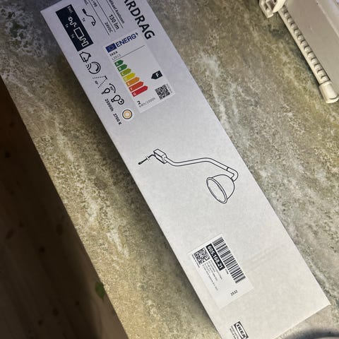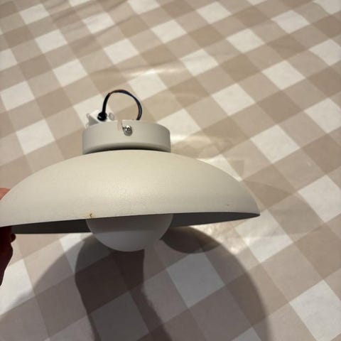 Lampan köptes för ca 10 år sen men sattes aldrig upp och har aldrig använts. Vi har hunnit flytta 2 gånger sen dess, lampan har följt med men aldrig lämnat kartongen.