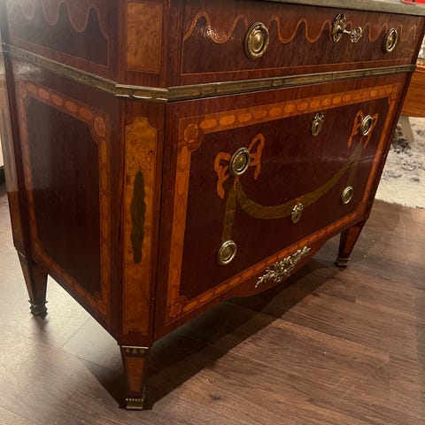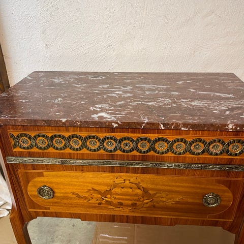 Byrå/sideboard med marmorskiva. Intarsia.