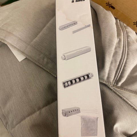 Utdragbara tvättlinor, plats-sparande. Praktisk i badrummet eller kanske på balkong eller uteplats. Helt ny, i oöppnad förpackning.