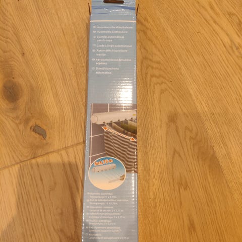 Utdragbara tvättlinor, plats-sparande. Praktisk i badrummet eller kanske på balkong eller uteplats. Helt ny, i oöppnad förpackning. Kan skickas eller hämtas i Ekensberg (vid Gröndal i Stockholm).