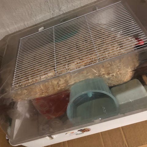 Hamsterbur 55x37x27 cm med tillbehör samt hage. Pris för allt 300 kr