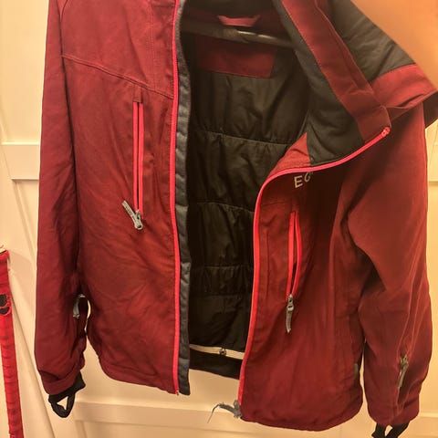Väldigt sparsamt använd , rymlig i storleken. Finns snö-lås , liftkortsficka mm.