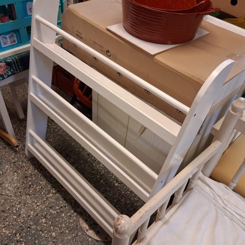 Hel och stabil men sliten i den vita färgen så kan med lite ny färg bli som ny.