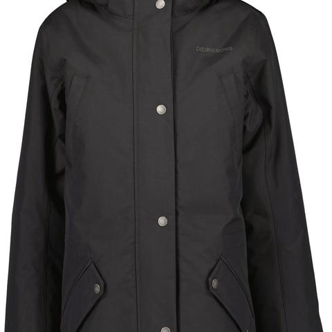 Didriksons varmfodrad vinterjacka i storlek 150, färg vit. Tillverkad i Gore-Tex-material som är vattentätt och erbjuder skydd mot väder och vind. Jackan är designad för att ge funktionellt skydd och komfort vid utomhusaktiviteter.