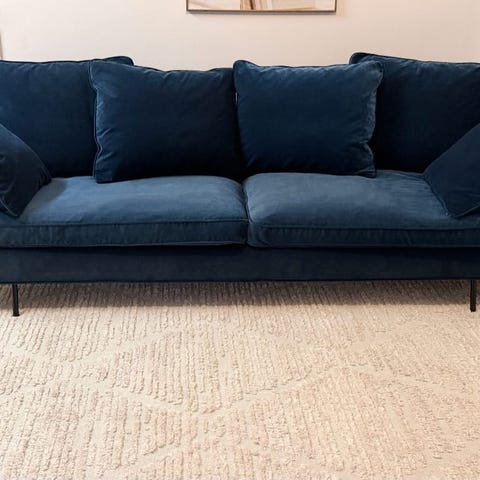 Sits soffa Julia i svart sammet (avtagbar klädsel) med tre sittplatser och lösa ryggkuddar med dunstoppning. Skön att sitta i. Köpt på Auctionnet förra hösten och är förutom slitage på klädsel enligt bilder i fint skick. Jag köpte den med avsikt att sy ny klädsel men vi har nu köpt nya soffor istället och säljer därför denna pjäs. Enligt min uppfattning är det en relativt enkel soffa att sy ny klädsel till själv om man har lite sömnadsvana. Det finns även ett stort urval av klädslar att köpa till denna modell via Tibergs möbler. Priset är satt lågt med tanke på slitage på klädseln och förutsätter att man hämtar själv. Finns i Torsby på Värmdö.