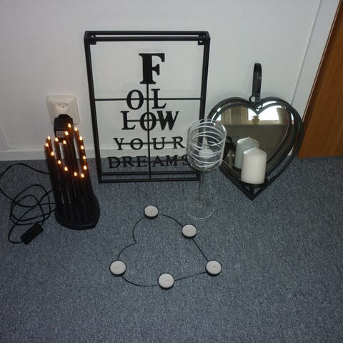XXL dekorationsornament med cirkulära speglar och abstrakt design i svart, vitt och silver. Passar för väggdekoration i olika rum.