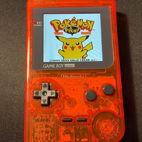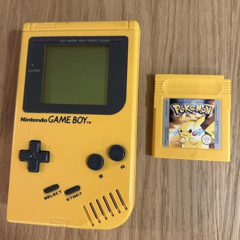 Authentic Pokémon Red cartridge that can be played on Game Boy, Game Boy Pocket, Game Boy Color, Game Boy Advance and Nintendo DS/Lite.