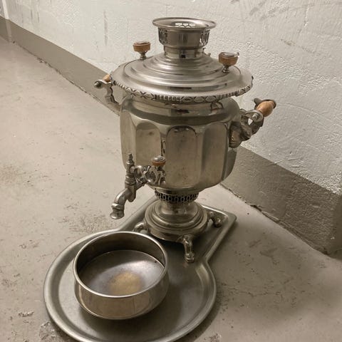 Koppar kanna med stativ antik