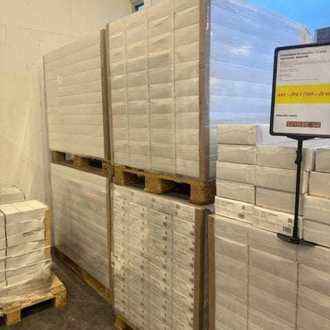 Totalt 213 kvm klickgolv. Troligen från den belgiska kvalitetsgolvstillverkaren BerryAlloc.
