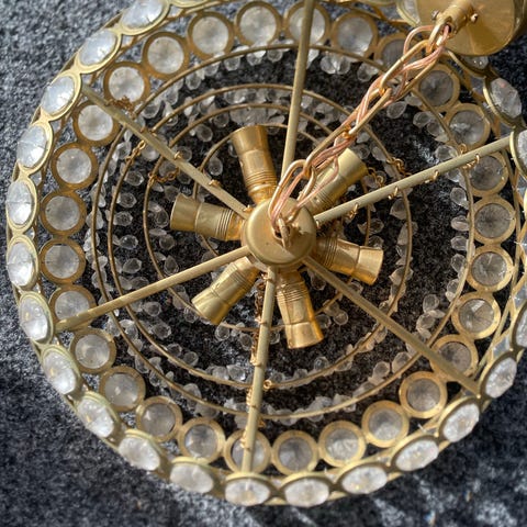 Vacker och stilren taklampa med gnistrande glasprismor och metallstomme. Ger ett lyxigt och klassiskt intryck när den är tänd och passar perfekt i vardagsrum, sovrum eller hall.