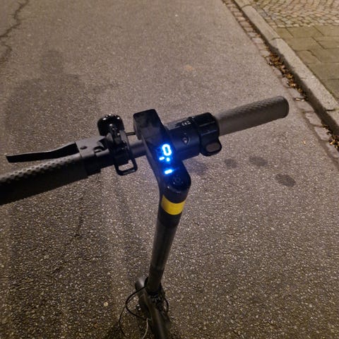 Freeve elsparkcykel i svart färg. Modellen har ståplatta, styre med handbroms och display/enhet vid handtaget. Lämplig för kortare transporter och pendling i stadsmiljö. Drivs av elmotor och batteri som är integrerat i sparkcykelns konstruktion.